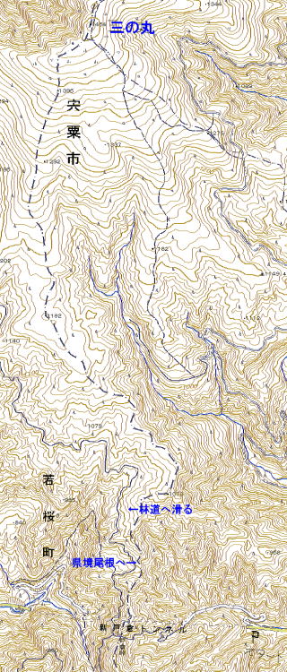 林道と県境尾根の 最も標高差の無い所